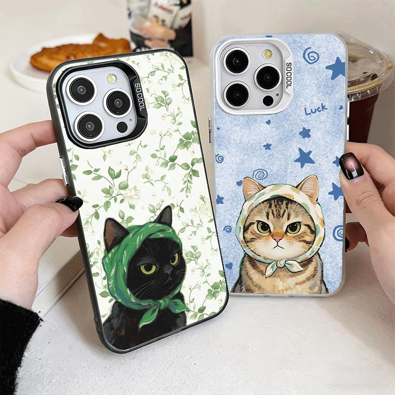 Cute Floral Headscarf Kitten Shockproof Phone Case for iPhone 17 Air 16 16E 15 Pro Max 14 Plus 13 Mini 12 Back Cover Anti Fall F