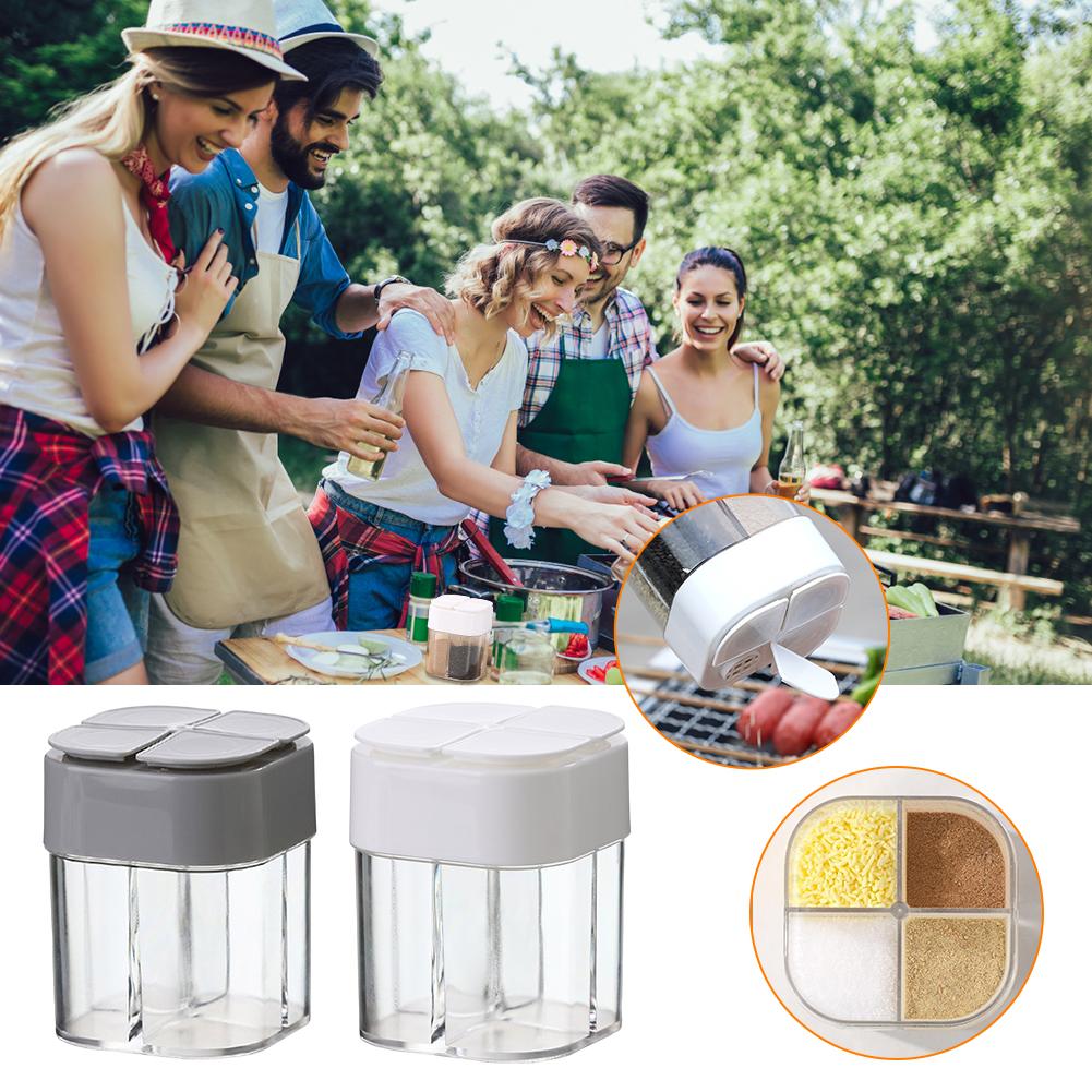 4in1 Camping Seasoning Shaker Transparent 4 Grids Flip Spice Jar with Lid Outdoor BBQ Cooking Salt Pepper Storage Box Home Jars