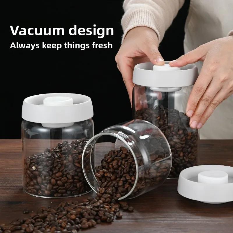Transparent High Borosilicate Glass Airtight Canisters Various Sizes Household Coffee Storage Jars One-Click Damp-Proof Holders