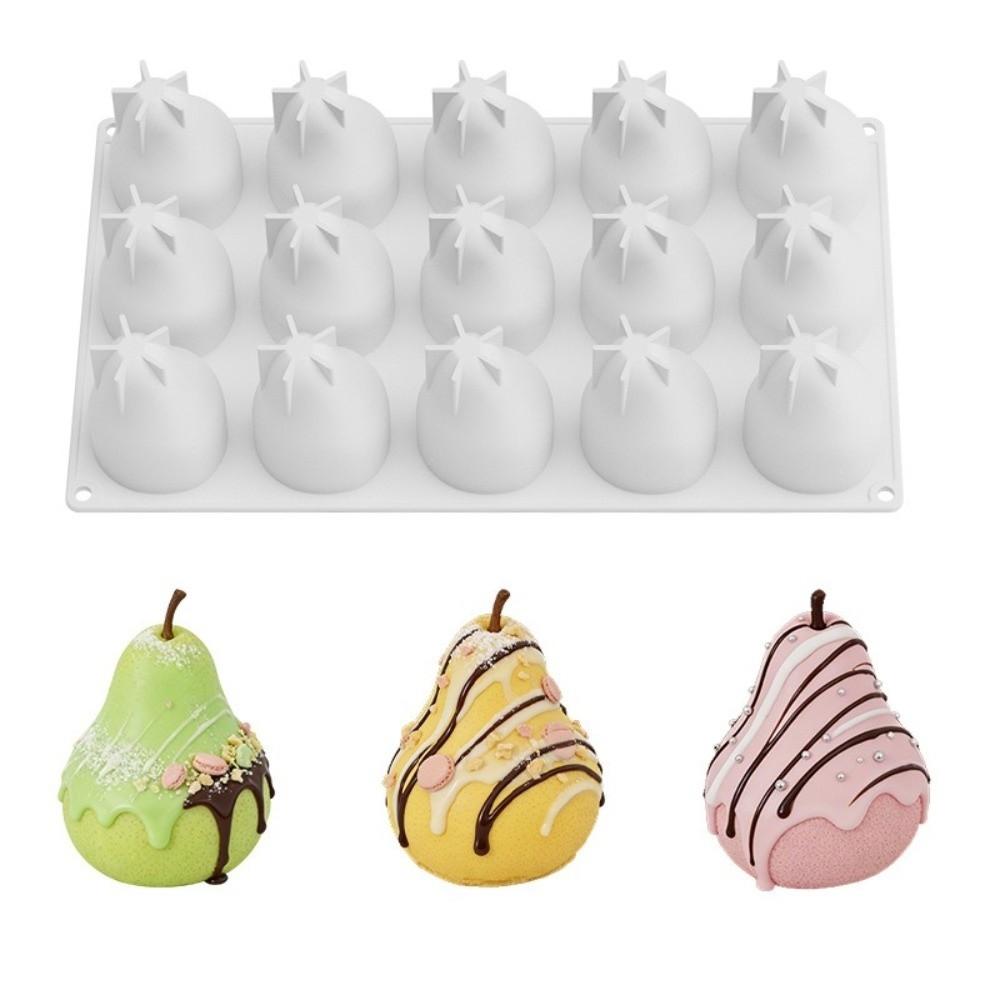 --This 3D pear-shaped mold is perfect for making French mousse cakes, featuring a realistic and vivid pear design that creates exquisite and attractive dessert presentations easily.
