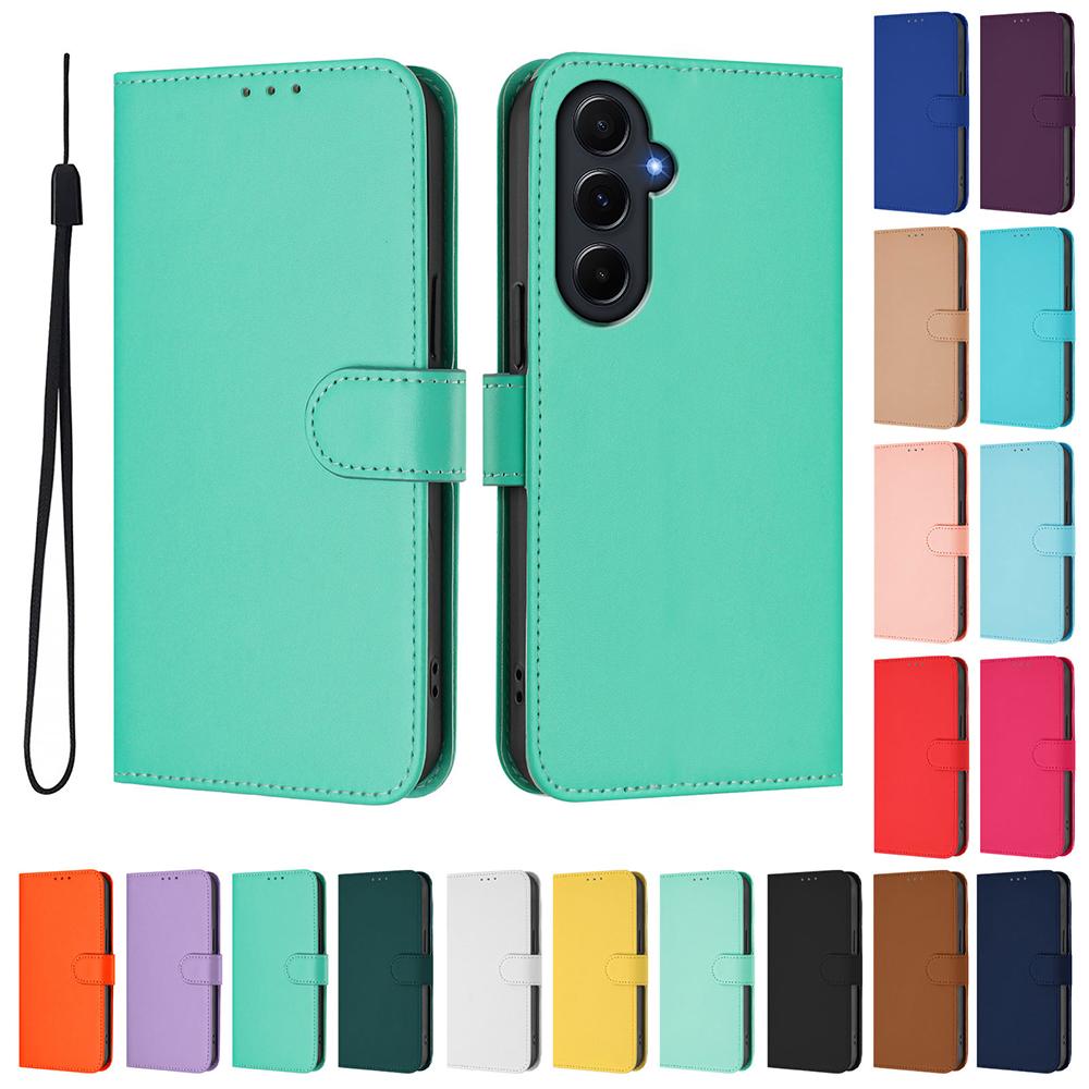 Solid Color Wallet Case for Samsung Galaxy M62 M55 M54 M53 M52 M35 M34 M33 M32 M23 M15 M14 M13 F62 Card Holder Strap Phone Cover
