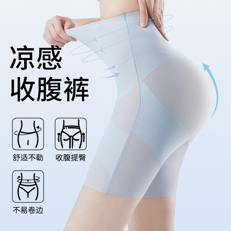 High-waisted belly pants women's summer ice silk thin fish bone seamless shaping underwear anti-light hip-lifting body leggings