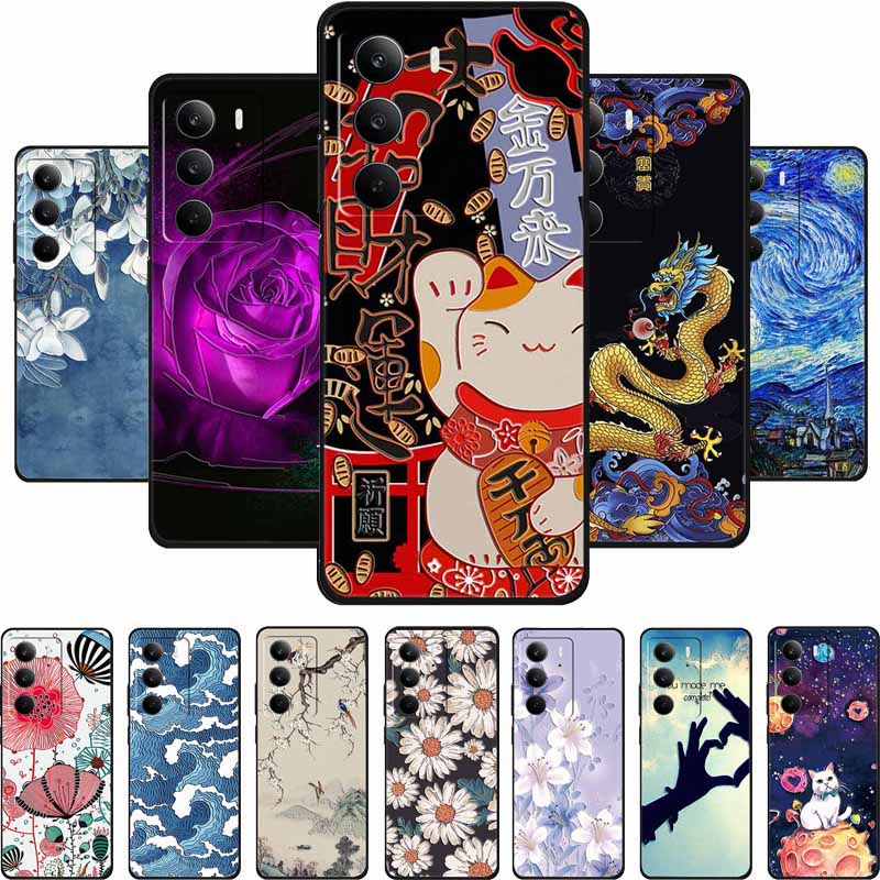 3D Emboss Case For Realme C75 4G 5G C75x V70 V70s 14x Realme C71 4G Case C 75 71 Coque Flower Black Silicone Soft Back Cover Bag