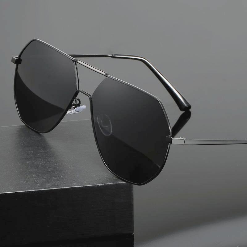 Color Shift Sunglasses Men Classic Metal Material Frame Sun Glasses UV400 Protection Male Classic Double Bridge Square Driving Googles