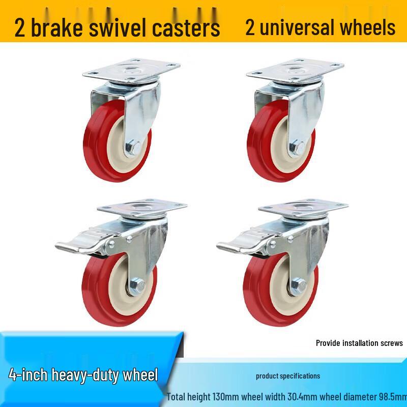 Heavy-Duty 4-inch Nylon Swivel Caster Wheels with Brakes
