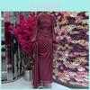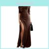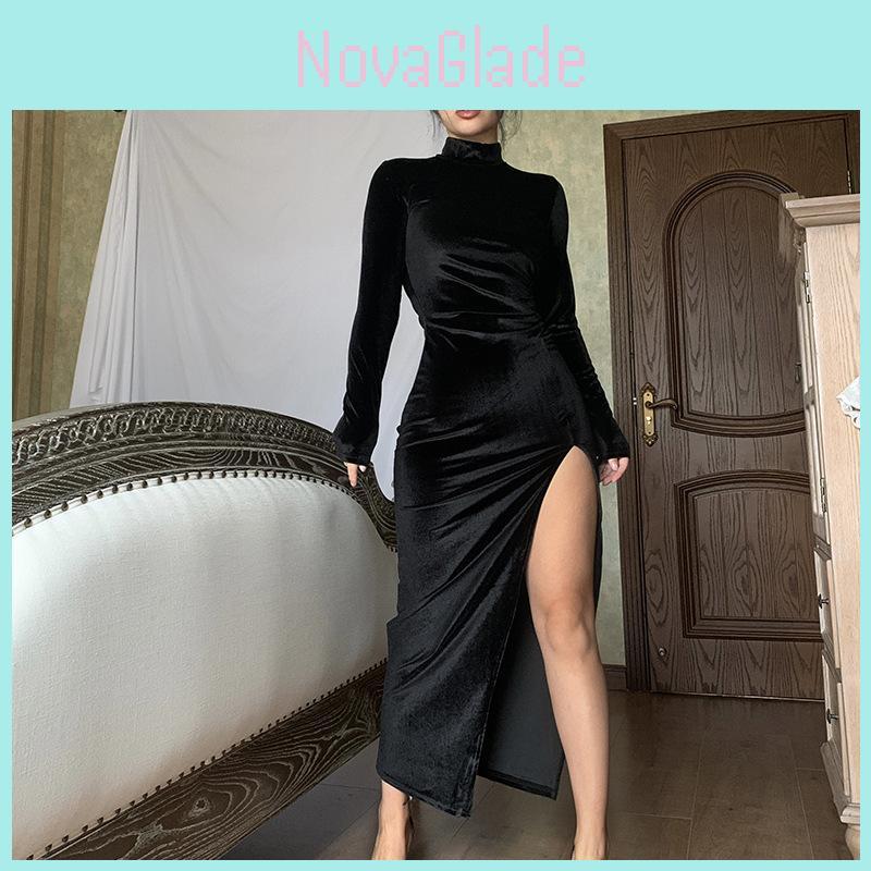 Elegant Velvet Long Dress With High Neck And Slit For Autumn Winter Wear