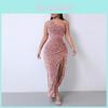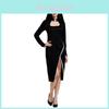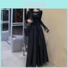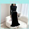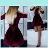 This elegant long-sleeve dress features a high neckline and a high-waisted silhouette, crafted from soft Korean velvet for a luxurious feel. asymmetric hem and a backless detail, ideal for autumn and winter occasions. The dress is available in sizes S to 3XL and in colors including black, wine red, and navy. Wipe clean with a damp cloth to maintain its appearance.