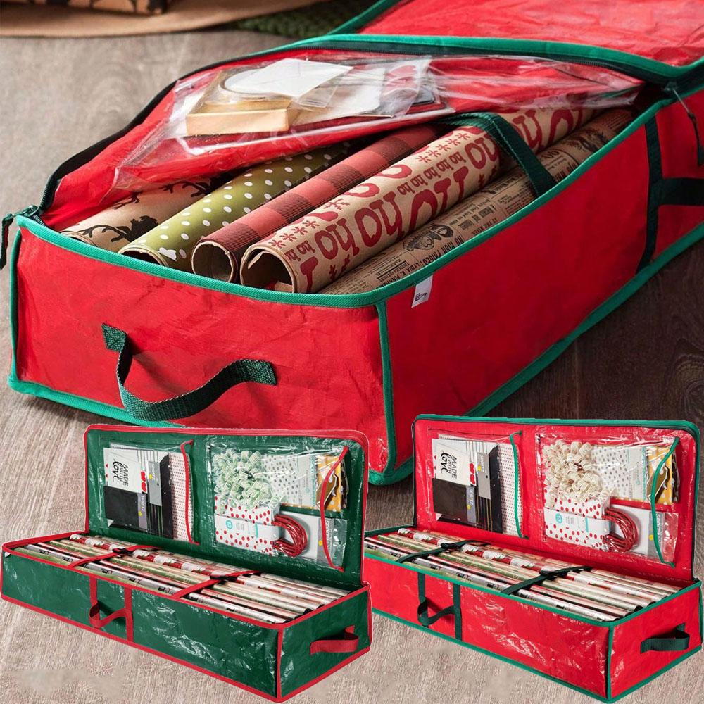 Wrapping Paper Organizer Storage Container for Christmas Holiday Gift Wrap Storage Underbed Container with Interior Pockets Fits