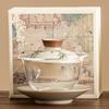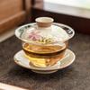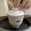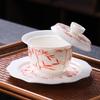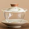Hand drawn emerald green bamboo tea bowl with lid, home kung fu tea bowl, glass tea set, ceramic three piece lid bowl