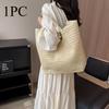 Chic Large Capacity Paper Woven Straw Tote Handbag for Women, Summer Woven Beach Shoulder Bag with Zip Closure