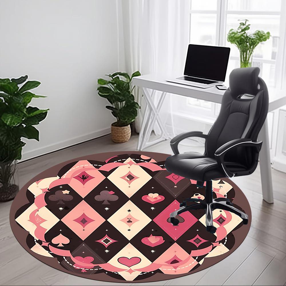 1PC Playing Card Pattern Chair Carpet for Office, Indoor Non-Slip Washable Carpet, Soft Comfortable Mat For Office Room yy250930083