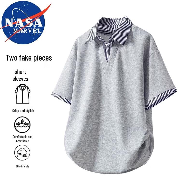 NASA MARVEL Men's Faux Layered Lapel Short Sleeve T-Shirt