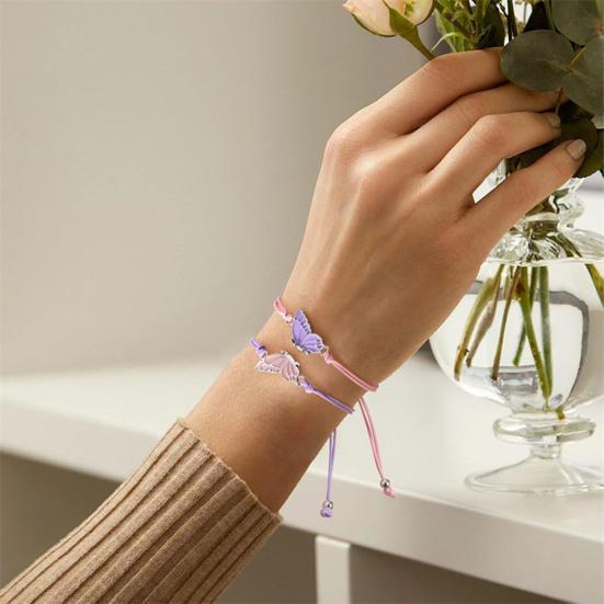 Unique Two-Color Butterfly Pendant: The bracelets showcase a beautifully crafted butterfly pendant made with exquisite alloy oil-dropping technology. Featuring soft pink and purple tones, the three-dimensional butterfly is polished smooth to prevent skin irritation while adding a textured, elegant touch that symbolizes companionship and love.