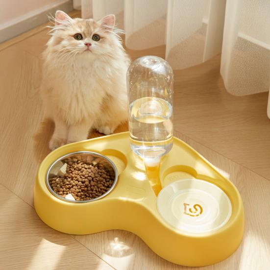 Cat Feeder Food Grade Stainless Steel Bowl Pet Feeder with Automatic Water Refill Dual Zone Design Cat Food Water Combo