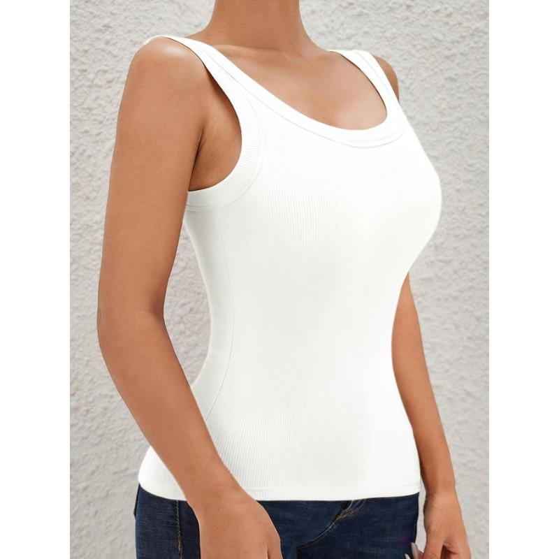 Women's Ribbed Scoop Neck Tank Slim Fit Sleeveless Shapewear Cami Casual Daily Basic Top