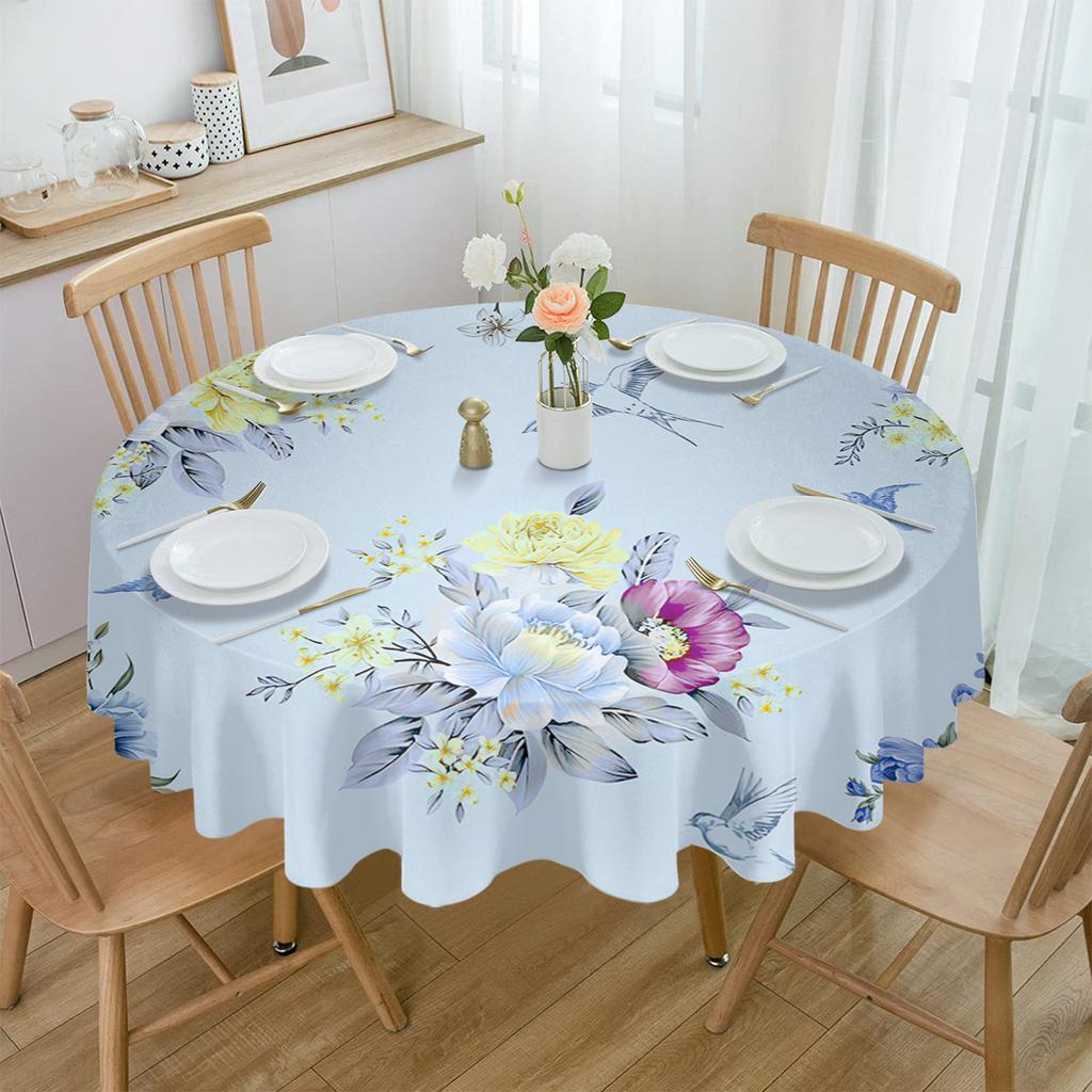 Waterproof Round Tablecloth Flower Bird Leaf Design For Wedding Party Dining Table Cover Decoration