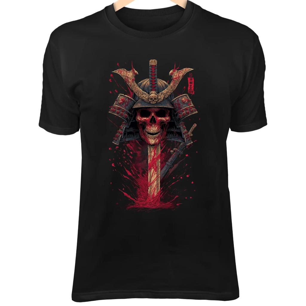 Demonic Skull Samurai II Shirt - Red Vein Armor and Split Katana Art