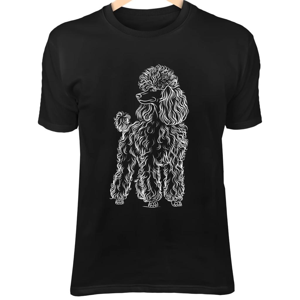 Poodle Dog Line Art - Fluffy Curly Fur, Elegant Minimalist Cartoon Doodle