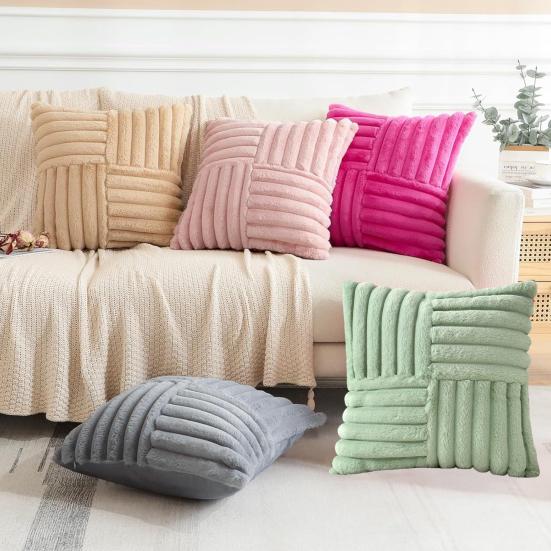 This throw pillow cover is crafted from high-quality fabric, offering a soft, comfortable touch that resists fading and wear. Its machine-washable design ensures easy maintenance and long-lasting use. Featuring a plush texture with a stylish striped pattern, it adds a fashionable yet simple accent to any space.