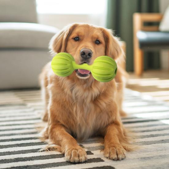 Made from highly elastic, bite-resistant TPR material, this toy withstands gnawing and deformation for long-lasting use. Its dumbbell shape makes it easy to grasp, perfect for tug-of-war, throwing, catching, and training your dog's focus. Crafted from safe, odor-free materials, it ensures secure chewing and endless fun.