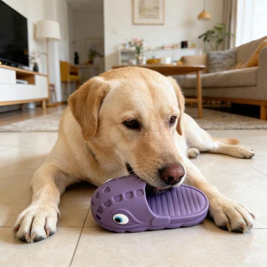The toy's simulated slipper shape, combined with a cute cartoon big eye design, instantly attracts dogs' curiosity and encourages playful biting. Highly elastic and bite-resistant, the durable latex material resists breakage, quickly rebounds after pressure, and maintains its shape through repeated use. Available in multiple colors and moderate size, this chew toy suits dogs of all ages for interactive play, companionship, and self-entertainment.