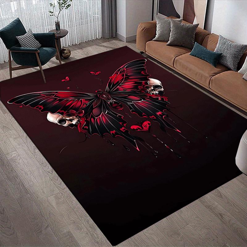 1pc Butterfly Skull Print, Design Area Rug - Soft, Anti-Slip, and Durable Gaming Room Decor for Bedroom, Living Room