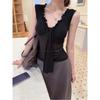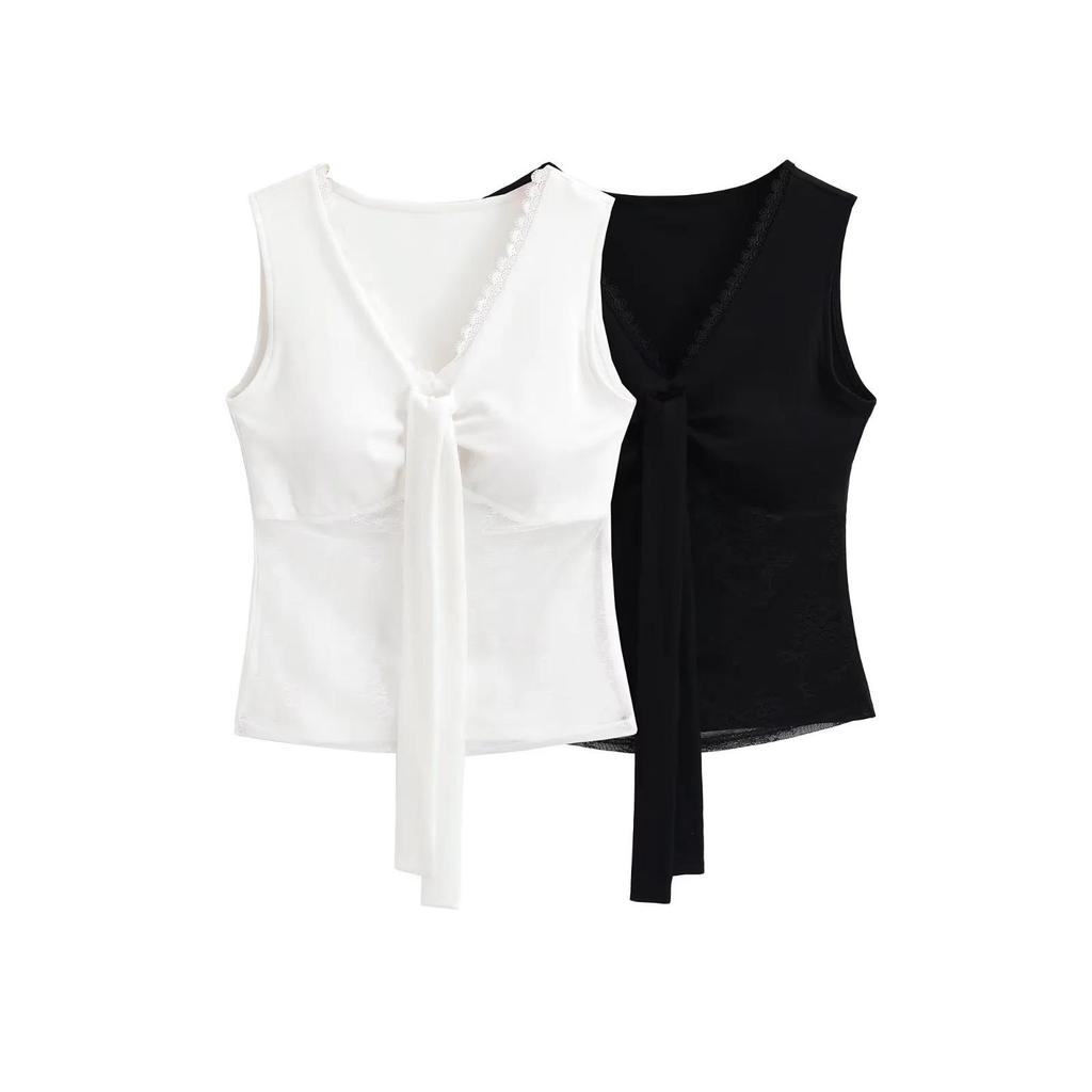 Women's V-Neck Lace Patchwork Tie-Up Cropped Tank Top