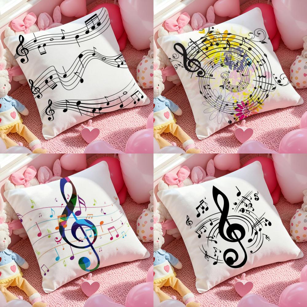 Sheet Music Printing Cushion Cover Antidustmite Pillowcase Invisible zipper silky short plush Sofa cushion cover