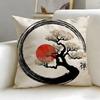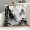 theme Chinese Ink Painting Style Cushion Cover Soft EasyWash Pillow Case Versatile for Couch Bed Travel and Office
