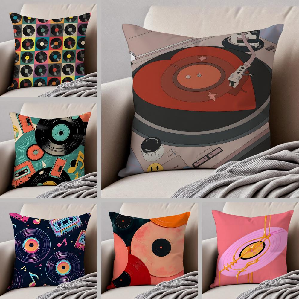 Vintage Vinyl Record Retro Music Cushion Cover Throw Pillow Cover Hidden Button Durable Polyester Chair Cushion