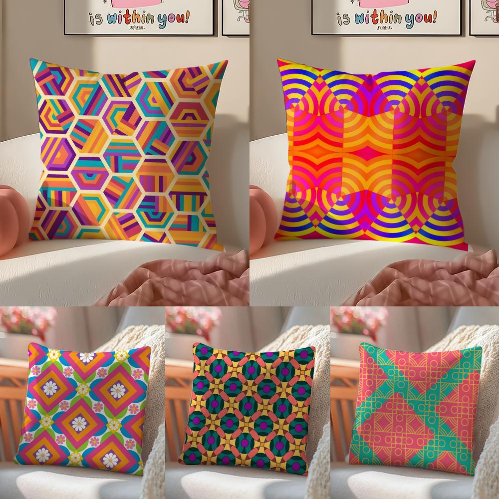 Colorful Geometric Continuous Art Cushion Cover Pillowcase Short Plush Invisible zipper Room Sofa Cushion Cover