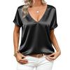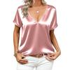 Women's Fashionable Casual Satin V-Neck Short-Sleeve Loose-Fit T-Shirt