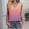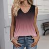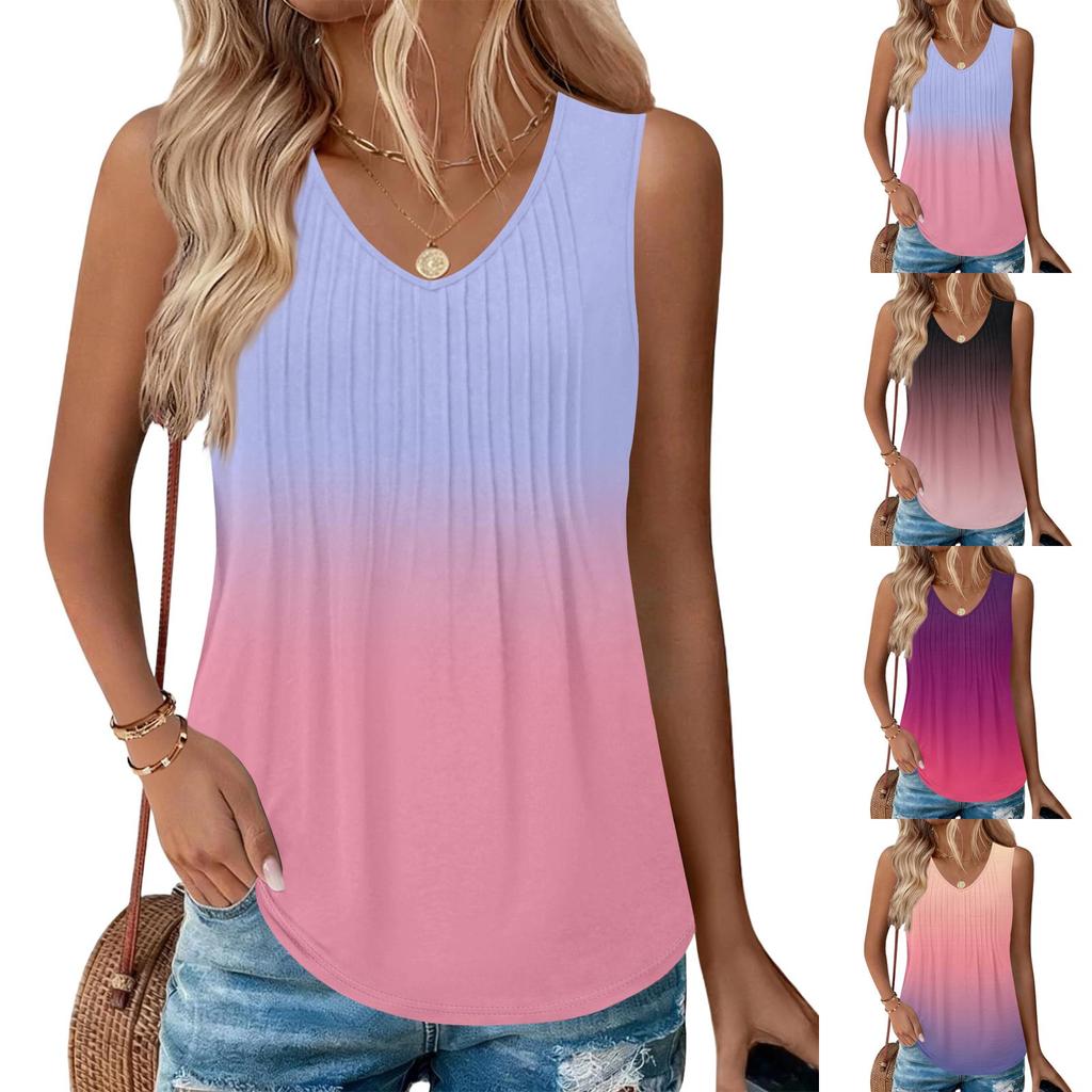 Women's Fashionable Sleeveless Vest With Pleats, V-neck, Tie- Gradient Color, Loose Fit, Flowy Summer Top
