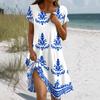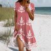 Women's Summer Short Sleeve Round Neck Floral Print Bohemian Dress With Pockets