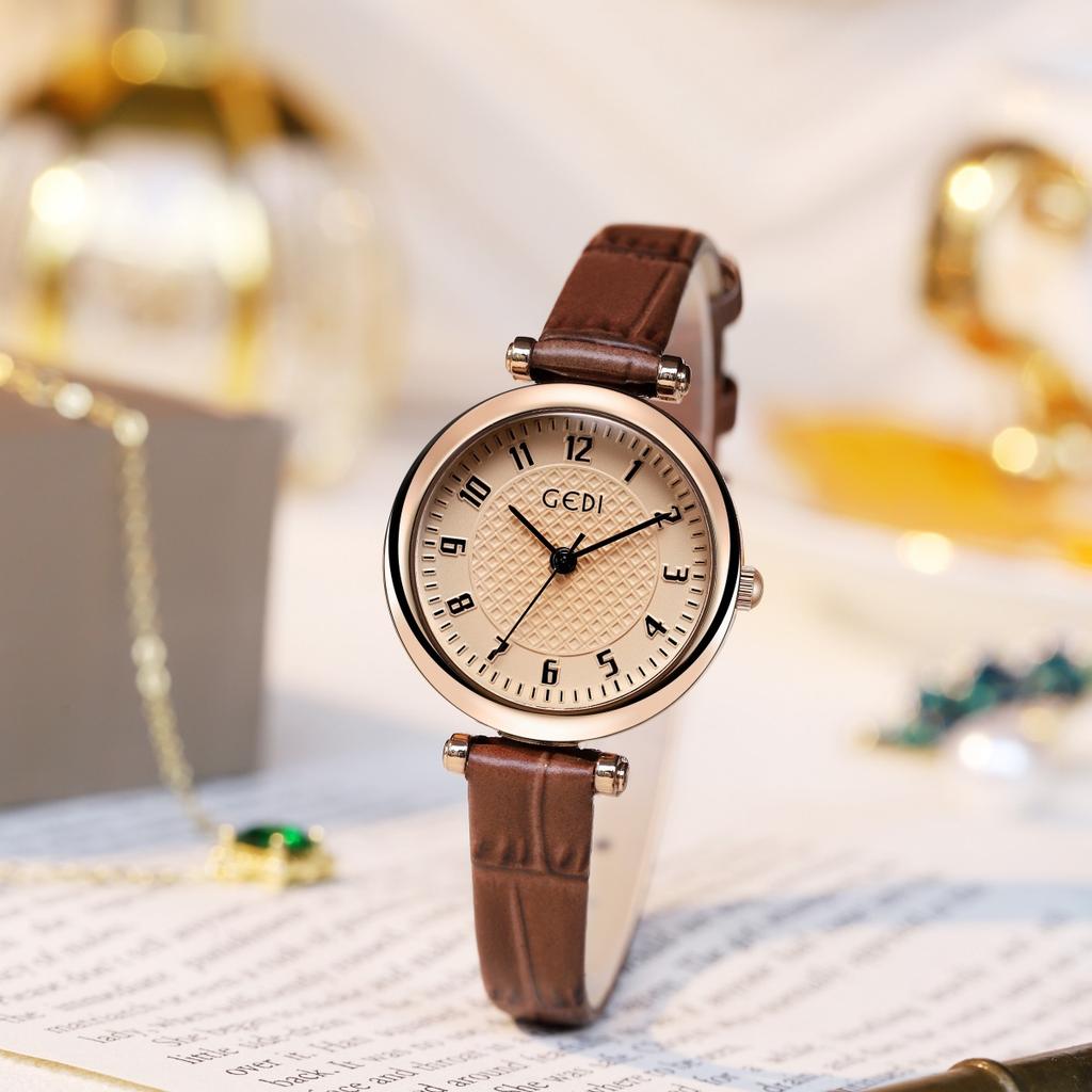 Simple Retro Style Student Small Bamboo Pattern Belt Quartz Waterproof Women'S Watch