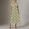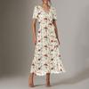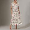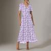 Women's Summer Floral Bohemian Dress Wrap V Neck Short Sleeves Ruffle A-Line Flowy Maxi Dress Summer Dresses For Women