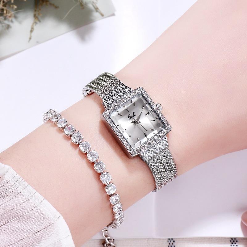 Mesh Belt Retro Square Women'S Watch Luxury Diamond-Encrusted High-End Watch Women'S Quartz Watch