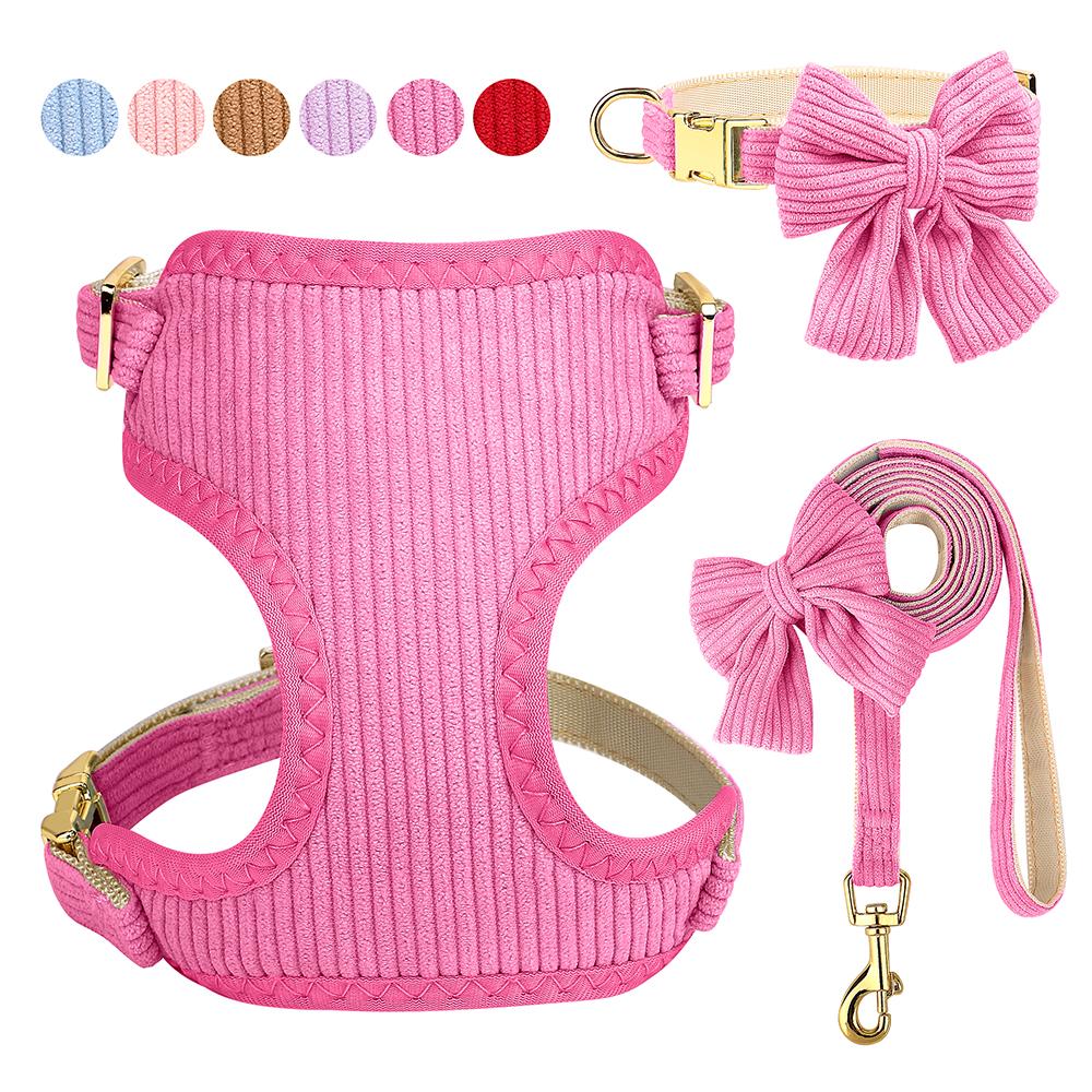 3PCS Dog Collar Harness Leash Set Breathable Dog Harnesses Soft Velvet Puppy Necklace With Bowknot Pet Walking Rope For Dogs Pug
