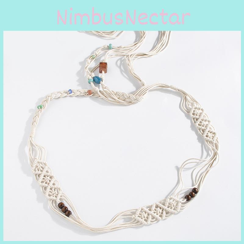 This bohemian-style woven belt features handmade beadwork and knot closures, offering a unique ethnic aesthetic. Crafted from breathable cotton-linen fabric, it measures over 4cm in width and is designed for waist sizes around 175cm. Ideal for boho-chic outfits or casual summer wear, it adds natural charm to any look. Wipe clean with a damp cloth to maintain its intricate craftsmanship.