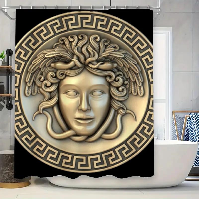 Gold Medusa Shower Curtain Decorative Bathroom Plush Bath Mat for Home Decoration Waterproof Oilcloth Print 3D Wall Stickers A