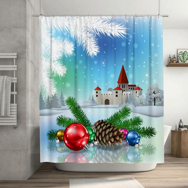 TU Winter Holiday Shower Curtain Festive Christmas Forest Deer Reindeer Elk Bathroom Decor Waterproof Holiday Home Decor Gift