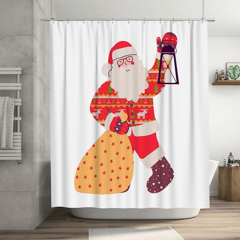 TU Christmas Shower Curtain Santa Claus Festive Holiday Bathroom Decor Waterproof Fabric Xmas Pattern Backdrop Vintage Style