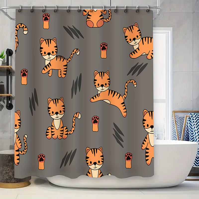 Brightly Printed Shower Curtain with Cartoon Cat Design Decorate Your Bathroom in Style