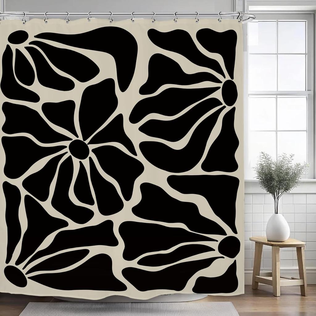 Abstract Matisse Flower Shower Curtain Retro Vintage Aesthetic Minimalist Black Modern Bathroom Set Accessories Decor with