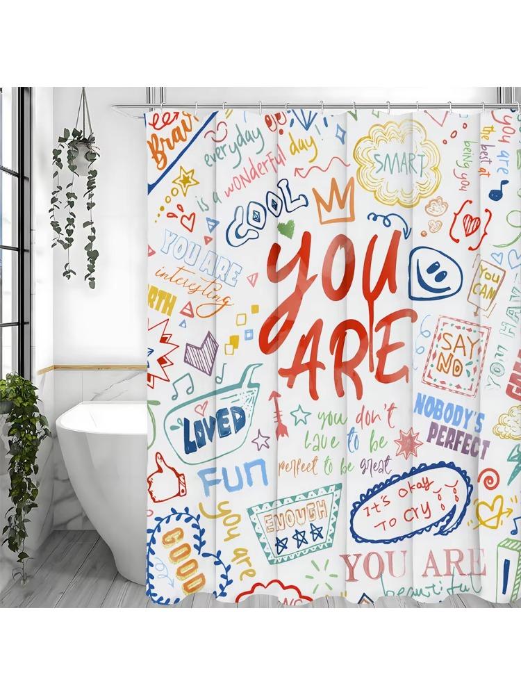 Inspirational Quotes Colorful Graffiti Text Shower Curtain, Bathroom Decorative Shower Curtain, Waterproof Shower Curtain with H