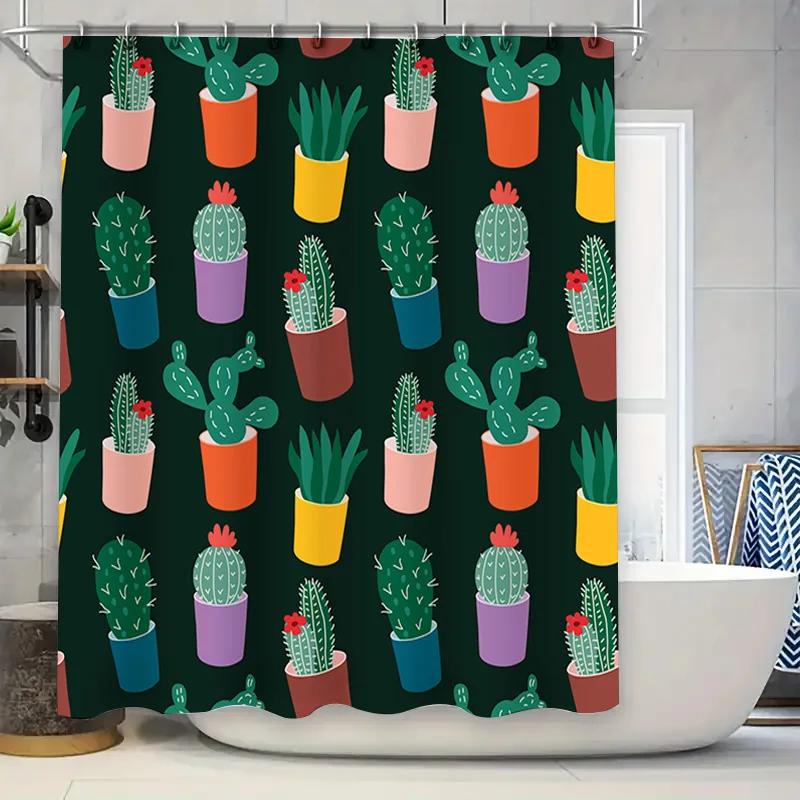 Colorful Cactus Bathroom Shower Curtain Decor Plant Pattern Print Waterproof Fabric for Home Decoration in Bathtub Red, Green, Y