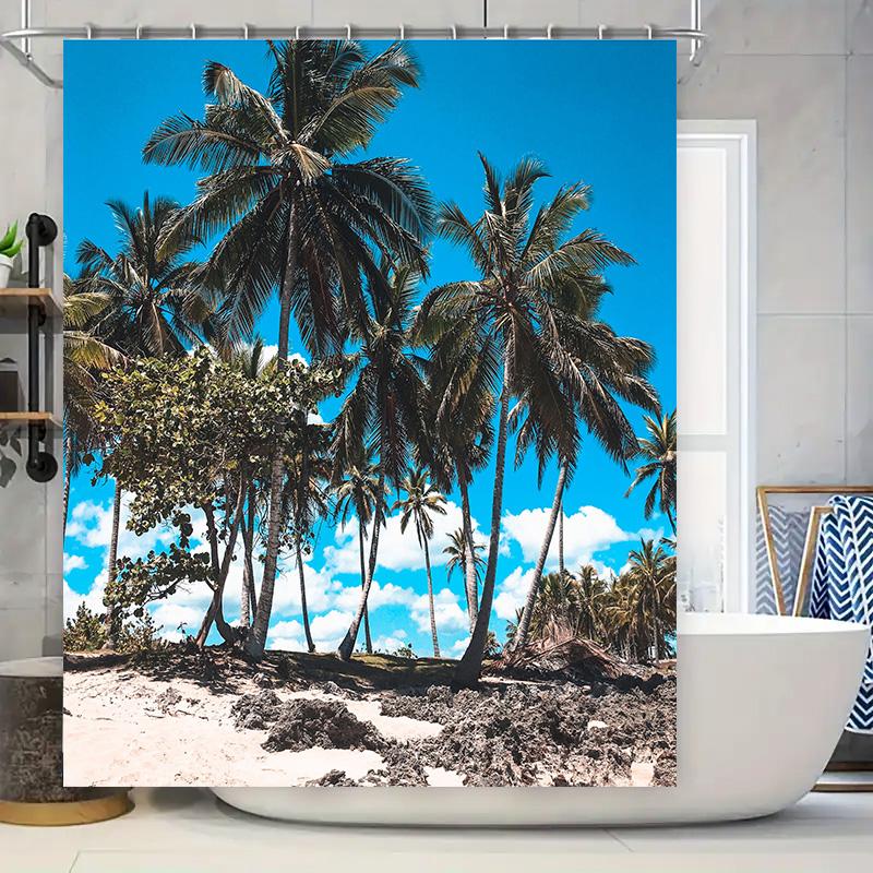 Beach Vibes Shower Curtain Blue Sky Palm Tree Design for Bathrooms Decorations Printed Fabric Size Customizable