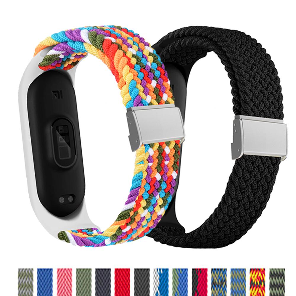 Braided solo loop Strap for Mi band 7 Elastic adjustable metal Nylon bracelet Miband4 miband 5 correa for xiaomi Mi band 4 3 5 6
