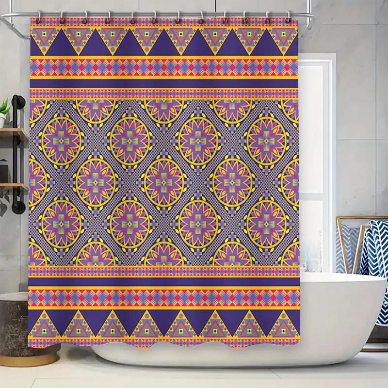 Vibrant Bohemian Shower Curtain with Geometric Patterns for Bathroom Decor Purple Pink Blue Yellow Orange Floral Design Bath Rug