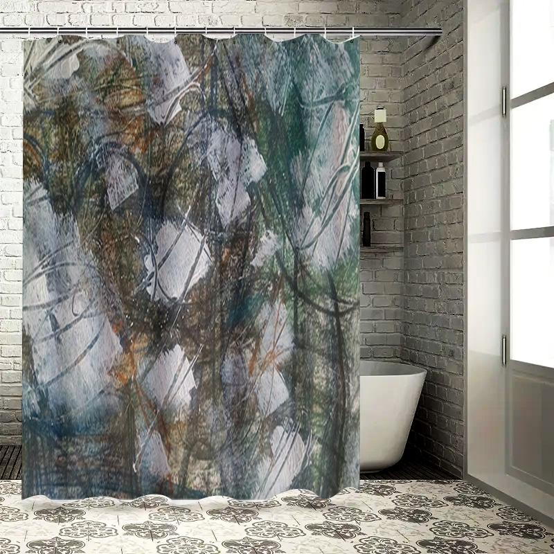 Modern Abstract Print Shower Curtain Set for Bathroom Decor Green/White Colorful Waterproof Fabric with Hooks included